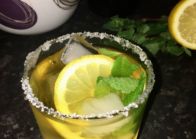 - Now fill the glass and garnish with mint leaves and lemon.